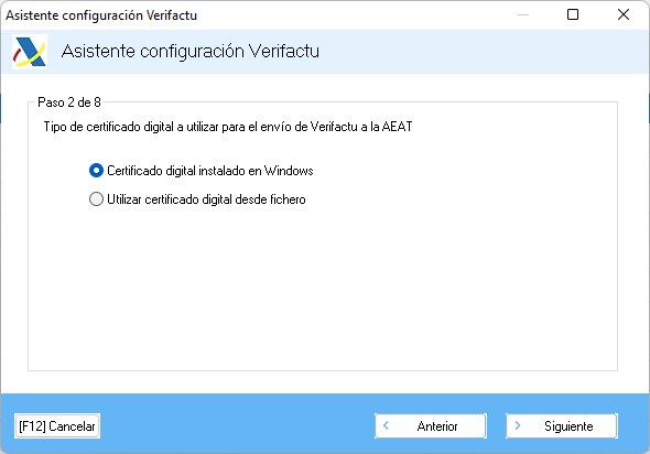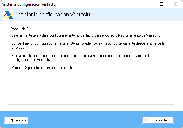 El asistente de Verifactu es necesario ejecutarlo como mínimo una vez para indicar la configuración necesaria para ejecutar Verifactu en Visionwin.