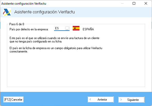 - Hay que indicar también el país que se utilizará por defecto cuando un cliente no tiene asignado el país. Esto evita rechazos en ficheros de clientes antiguos que no tienen el país configurado correctamente